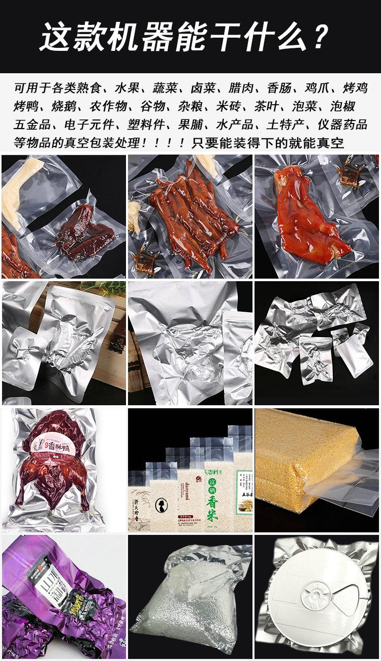 5.单式真空包装机使用不锈钢材料制作,防腐防潮,可以适应比较差的生产环境;保证了机械的美观性,延长了机械的使用寿命。